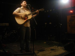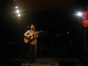 Tony Halchak. His style presents a low and striking voice, a few simple guitar chords with very little deviation, making his delivery rather hypnotic and somewht engaging Tony’s music resembles the best of acoustic Pink Floyd, Gordon Lightfoot, and possibly Mark Knopfler. His opening referenced a lonely vagabond, perhaps a fitting muse for his talent. He also stated “I’m a Lithuanian, and this is my Irish drinking song”. During the set he covered Tom Waits’ “Clap Hands” and also Springsteen’s “I’m On Fire”, segueing out of his song Five Alarm Fire. Someone shouted out “More originals”. Tony replies “I’m from Northeast PA, where people shout ‘Jessie’s Girl’! “.