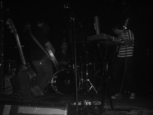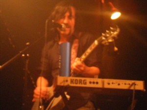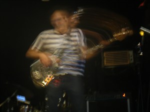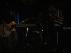 At Sea, a band I had known about for a few years but never had the opportunity to see. Jason had received airplay from me years ago when he was more solo/songwriter based. Now he’s armed with guitars and Korg (which he used on the bridge of one song), bassist Pier Paolo Pappalardo, and drummer Stefano Baldasseroni. The sound is standard indie rock that all the hipsters like, with occasional backing tracks to fill in some of the beats. James’ vocal delivery makes the difference, with a higher octave register at times that gives the songs a 70’s classic pop-rock sound (think The Raspberries, Cheap Trick) with a foot in 90’s rock (Weezer,). One song saw Jason pull out a plugged-in acoustic. Their sound was good and loud, just the right mix for a sparsely populated room that was beginning to fill up.