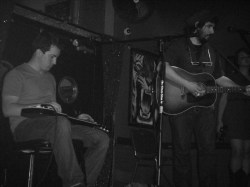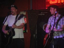 The Corporate Hearts are Zach and Craig Needles. The brothers, based in Bucks County, sing their uncorporate hearts out in the spirit of antifolk and a decided punk attitude. Their songs are those for the working indie man, true tales of life as a starving artist. My favorite song from the set was “21 Is The New 65”, featuring the phrase “Not so much these days”. (And it mentions Kerouac, a favorite author). I had last seen The Corporate Hearts in April 2011, on a bill including Mike Herrera of MxPx, and NYC’s Gasoline Heart. It had bee the duo’s 5th show. Now with a demo and full album beyond this, they are steadily performing around the Delaware Valley, and toss many non-sequiturs their fans’ way on Twitter.