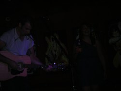 And speaking of Levee Drivers, it was an unplugged set tonight, as August led on acoustic, newest member Amber Twait on tambourine and harmony vocals, and Kyle Perella on pedal steel. If you haven’t seem yet, think of them as Philadelphia’s answer to Jon Spencer or Andy Friedman. Among the original tunes were covers of Dolly Parton and The White Stripes.